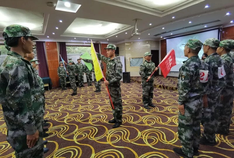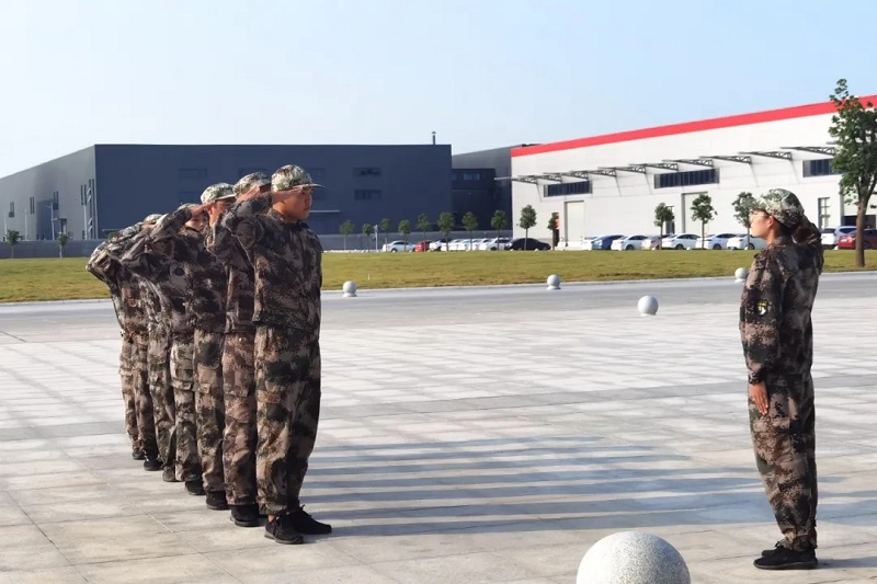 开营当天,陈总鼓励后备干部以集训为契机快速融入公司,并授予学员们“后备干部训练营”营旗。骄阳下,一群身着迷彩的活力青年站着挺拔的军姿、迈着有力的步伐、喊着响亮的囗号、唱着激昂的军歌,在训练场上挥汗如雨。
