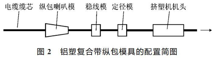 为了防止铝塑复合带纵包时发生断带问题,在制定纵包工艺时必须合理配置模具,保证铝塑复合带在连续运行过程中,逐渐完成变形,模具与铝塑复合带之间产生的摩擦力较小。图2示出了在铝塑 ...